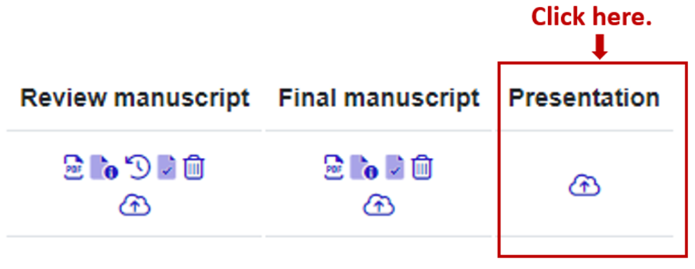 .Step 1: Login to EDAS and click on your paper profile. Then click Presentation.