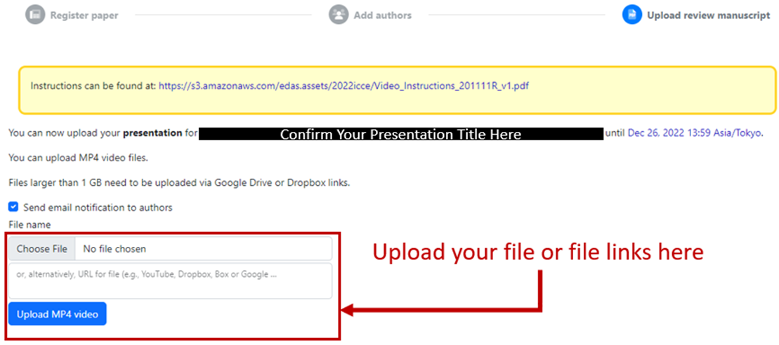 3. Upload to EDASby December 25. Our TPC will review and request a resubmission if the presentation video is of inadequate quality.